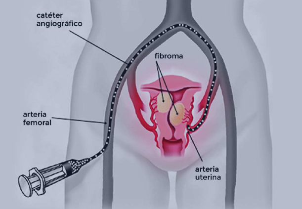 - Se introduce un catéter por la ingle o muñeca hasta llegar a las arterias uterinas.